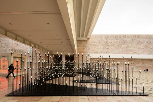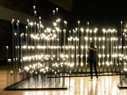 設(shè)計(jì)師巧妙地將立地?zé)艚M成的一個(gè)路徑,每只燈泡以合適的高度存在,讓進(jìn)入的觀眾體驗(yàn)神奇的觀感。