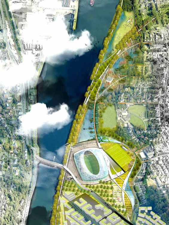 這一城市空間盡可能地環繞著Pairc Ui Chaoimh體育館,不但方便了比賽日的愛爾蘭體育協會的運動愛好者們,這里還可以辦科克的文化活動、慶祝活動和聚會,從而把項目變成南碼頭區振興的催化劑。愛爾蘭體育協會建議把體育場整合到公園中,成為該項設計的一個重要元素。
