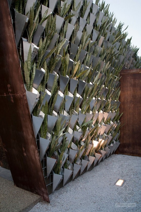 這座生長著的墻體與工業鍛造的鋼鐵表面形成了鮮明的對比和贊譽。在垂直花園內部,自然光從大廈的開放空間中進來,然而外部的電動方格圍欄使得陽光的控制更加容易。
