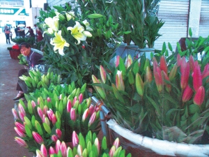據斗南花卉拍賣交易中心施先生介紹,目前該中心鮮切花交易量每天約150萬枝,與去年同期相比,百合花價格總體略有走低,主要是多頭百合“黃天霸”降價幅度較大,每把從85元左右下降到35元左右,單頭“黃天霸”和“羅賓娜”每把25元降到15元左右。但百合花銷售淡季很快將過去,價格會穩中有升。
