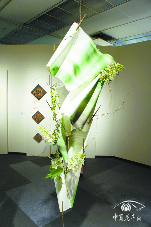 圖2“日本插花藝術展”中國風華道會的作品,詮釋曲線的造型美。