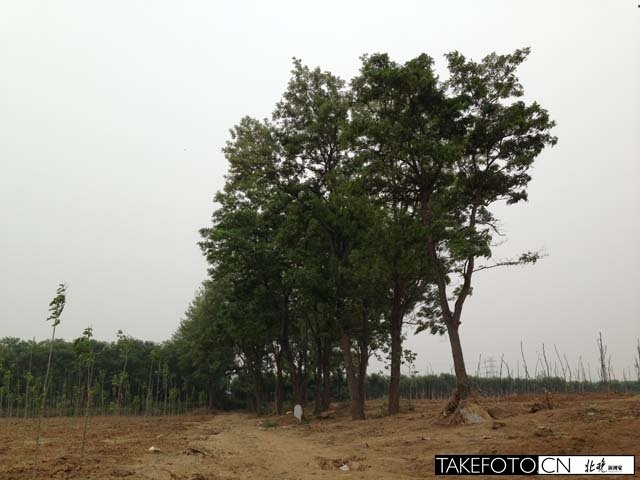 下午三點(diǎn)多,通燕高速路南側(cè)車(chē)輛不斷地呼嘯而過(guò),灰塵高高揚(yáng)起。而在路北側(cè)的這片樹(shù)林里,沒(méi)有揚(yáng)塵,沒(méi)有車(chē)輛飛馳而過(guò)時(shí)的隆隆聲,只有村民們打牌的嬉笑聲。離林地入口十多米遠(yuǎn)的一個(gè)小廣場(chǎng)正中,“三八國(guó)際友誼林”的石碑是這里唯一的標(biāo)志物。石碑以北是大片樹(shù)林,以槐樹(shù)、楊樹(shù)和柳樹(shù)為主,林間邊緣的大片空地是村民們休閑聊天之處。