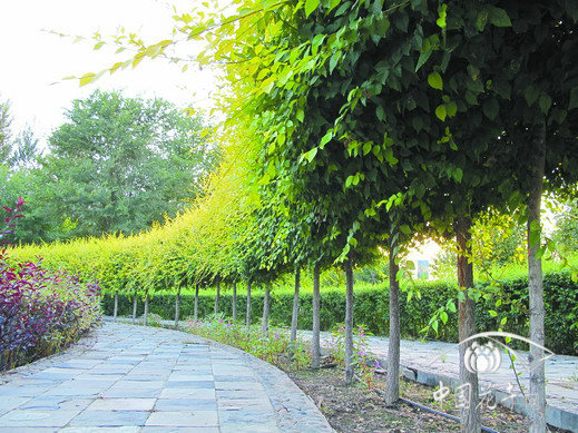 近日,記者在寧夏森淼集團的示范種植園里看到一種“空中綠籬”。該集團總經理沈效東表示,“空中綠籬”由多株獨干金葉榆緊密排列組成,通過頻繁的修剪使樹冠頂部、底部均保持平整,從遠處看如同一道綠籬懸浮在空中。