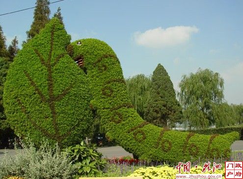 王志堅介紹,此次展出的綠雕造型以穩重大氣為主,觀賞性極強,同時也迎合了國慶節喜慶的節日氛圍。主要擺次地點為:長江廣場3座、黃河廣場1座、神農城2座、長株高速出口處1座、京港澳高速出口處1座、體育中心2座。
