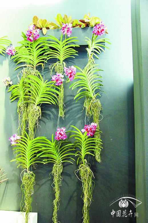 盆栽植物分會:可裸根生長的萬代蘭懸掛在墻上。