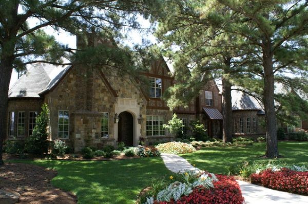 另一種類型的傳統前院美化設有柔和的色調組合。