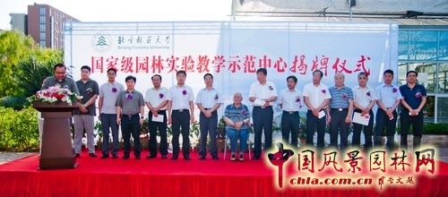 中國(guó)風(fēng)景園林網(wǎng)訊 5月20日,國(guó)家級(jí)園林實(shí)驗(yàn)教學(xué)示范中心揭牌儀式在北京林業(yè)大學(xué)八家苗圃舉行,校黨委書記吳斌、校長(zhǎng)宋維明共同為示范中心揭牌。中國(guó)工程院院士孟兆禎、校黨委副書記全海、副校長(zhǎng)駱有慶、副校長(zhǎng)王自力出席了儀式。