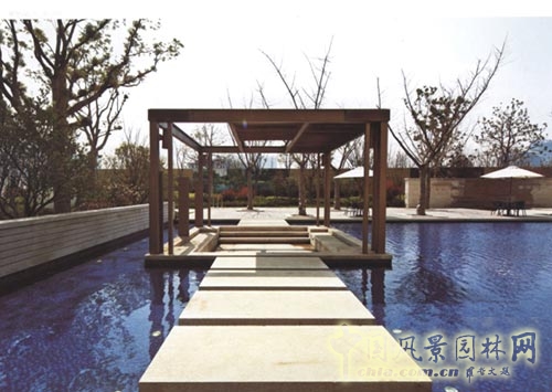 作為無錫頂級社區,具有明確的目標人群。設計師將藝術性和功能性相結合,通過流暢的線條,大面積的草坪,簡潔的空間,還有水墨畫一般的水中倒影,打造浪漫式的禪意空間。