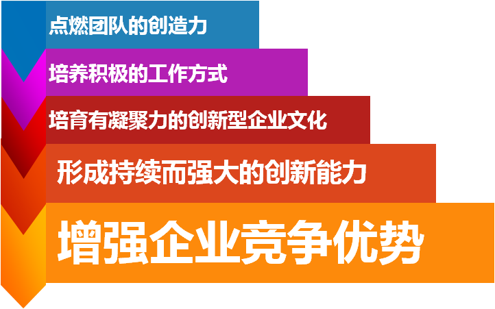 來自60年的美國創(chuàng)新實(shí)踐、4年的本土化運(yùn)用的融智創(chuàng)新管理實(shí)戰(zhàn)培訓(xùn),將幫助團(tuán)隊(duì)從領(lǐng)導(dǎo)者到員工自上而下建立正確統(tǒng)一的創(chuàng)新思維平臺,導(dǎo)入系統(tǒng)的創(chuàng)新方法,定制高效的創(chuàng)新機(jī)制,在快樂創(chuàng)新的氛圍中全面點(diǎn)燃團(tuán)隊(duì)的創(chuàng)造力和積極性,顛覆性的改變企業(yè)的命運(yùn)。改變領(lǐng)導(dǎo)者、改變員工、最終實(shí)現(xiàn)企業(yè)真正的創(chuàng)新夢想!
