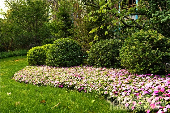 在本案的環境設計中,植物造景是打造英倫風情的重要元素之一。強調季節上的變化及四季的均衡,大量運用地被花卉搭配喬灌木,突出空間的層次與色彩的搭配,營造浪漫幽靜的英式感覺。適量果樹的種植設計,豐富了生活的情趣,達到觀花、觀果的景觀效果。強調選用當地樹種,以耐鹽堿性樹種作為本社區的基調樹種。
