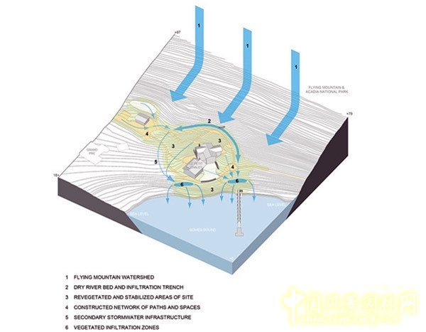 該項目的改造對于設計師而言存在著眾多的挑戰。項目距離桑德峽灣不足23米,一系列的州級、聯邦級條款也約束著項目的進行。經過景觀設計師對場地的精細考察之后,項目列出了四點目標: