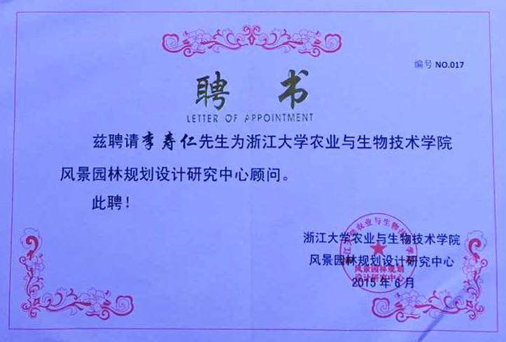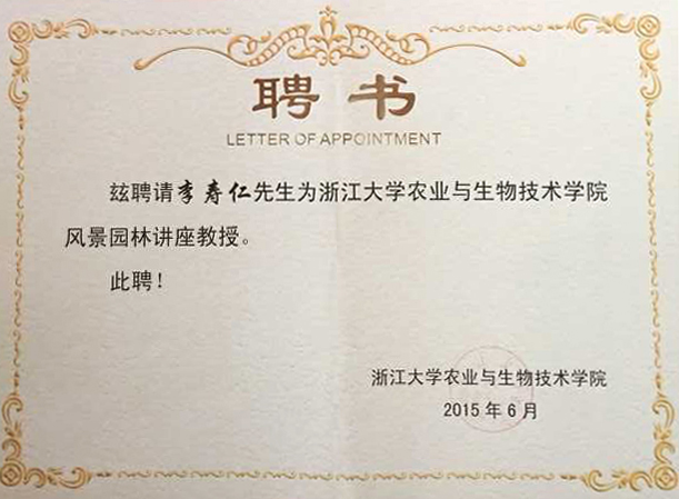 課后,李壽仁被聘任為“浙江大學農業與生物技術學院風景園林講座教授”和“浙江大學農業與生物技術學院風景園林規劃設計研究中心顧問”。作為企業合作學校的一名校外導師,李壽仁一直是關注校企合作、注重培養人才的踐行者。