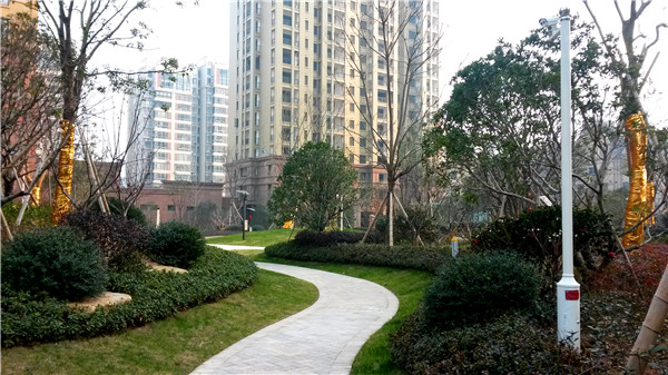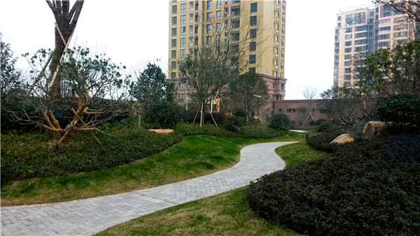 3. 鄉土樹種應用:鄉土樹種適應性強,成活率高,減少運輸成本;使居住區景觀與城市景觀過度自然。本工程主要運用了香樟、桂花、櫻花、紅楓、杜鵑、紅花檵木、茶花等寧波鄉土樹種。