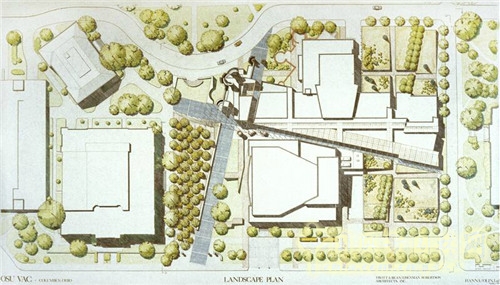 一個經典的建筑佳作,配以富有特點的景觀,才能更加引人入勝。威克斯納藝術中心的景觀由美國知名景觀設計師勞里·歐林事務所在1983年——1985年期間完成,從構思到效果,都為這個建筑環境增添了不少的亮點,對于把場區內分散的各個區域連接起來起到了重要的作用。