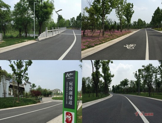 自創園工作啟動以來,幾年間,一項項綠化精品工程為城市描繪了一幅又一幅的美麗畫卷。在這些畫卷中,宛陵湖綠化精品項目尤其突出。宛陵湖位于宣城市區南部,處在以敬亭山為起點的城市景觀綠軸的南部末端。景區北至水陽江大道,南至濱湖路,東臨宣向路,西至薰化路,總面積約3.6平方公里。建設有商業觀演區、運動健身區、文化休憩區、生態養生區和中央湖區五個功能區。這一兼具美觀與實用功能的工程,讓昔日雜亂無章的溝渠變成了波光粼粼的湖面。如今,這里綠樹成蔭,配套建設的游園小道和建筑小品可愛、親民,成了市民夏季納涼的好去處。