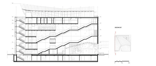 意大利館是使用復雜和創新性的材料和技術的建筑和結構的挑戰。建筑以一種可持續的方式運行,主要因為屋頂光伏玻璃和新混凝土的光催化性能的設計。2000噸的活性生物混凝土用于了所有700塊不同的分支面板上,4000平方米的帆罩用鋼400噸。