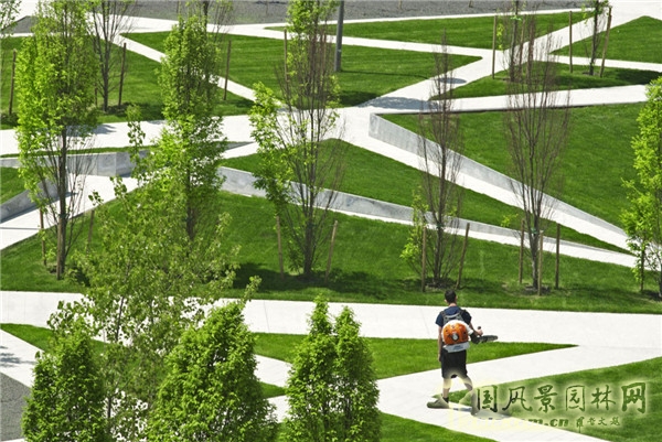 公園內的交叉回交循環系統借鑒了哈佛園的設計,在尊重學院景觀的同時,構建了網格狀的小徑,實現了公園與周圍景觀的無縫連接。