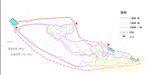整體交通方面情況如下:一級道路寬5m,二級道路寬3m;三級道路寬1.5m,全面覆蓋園區,保證各個景點的可達性。