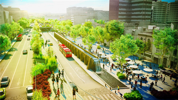 在城市化進程中,“暢行街道”意味著重塑交通與公共空間。本項目則反轉(zhuǎn)了這些數(shù)字:如果現(xiàn)今這個區(qū)域的70%屬于車輛流通,30%屬于人行流通,那么“查普爾特佩克文化之廊”將會通過生成新的空間來改變這些數(shù)據(jù),從而達到70%屬于人行及公眾使用,30%用于交通空間的整合。
