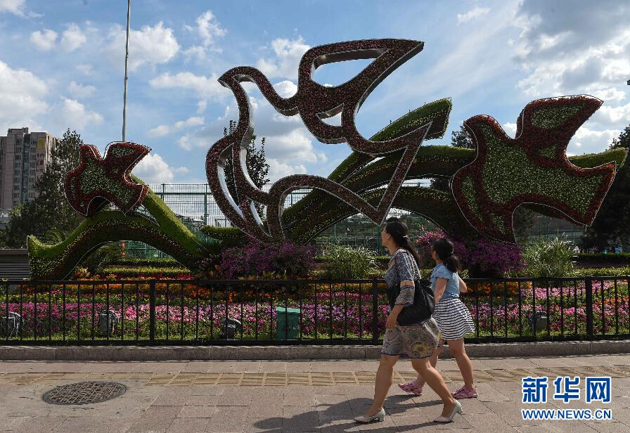 北京紀念抗日戰爭勝利70周年花卉布置基本完成