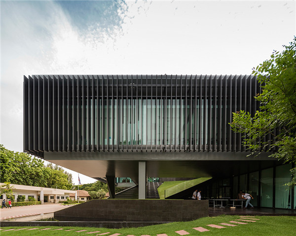 建筑位于油田的 入口處,占地2000平米,主要用作辦公。建筑師在地面上堆土造出綠草坡地,并把二層建筑架在騎上,形成一個擁有內院的虛實建筑,人們在建筑中可以欣賞到內部與外部的多層次綠景。