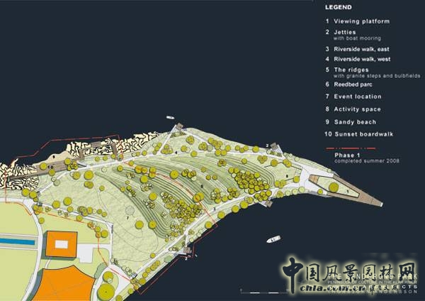 大沙半島一直以來都是一個引人注目的地方,但卻有一種說不出的失落感。在公園建設(shè)之前,這里完全沒有人愿意過來,但是建設(shè)之后就大不一樣了。卡爾斯塔德地區(qū)分為兩個主要的部分和八個小部分,其中有一片長300米的半島就是公園的位置。半島強(qiáng)悍的體魄賦予場地戲劇性,從空中看就像是一只鳥的尖喙。