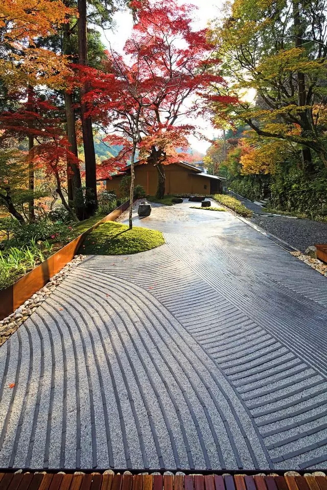 項目前身是一座名人度假住所,有一片視野開闊的賞景露臺,可以瞭望整個大井川的風景。項目的設計區(qū)域是建筑后方的室外空間,與主文化景區(qū)分隔開來,一度被視為一個陡峭的步道,即使展現(xiàn)出一些日本風格,卻不足以吸引路人的目光。設計師面臨的挑戰(zhàn)就是將這座隱藏的寶藏打造成高檔的度假勝地。