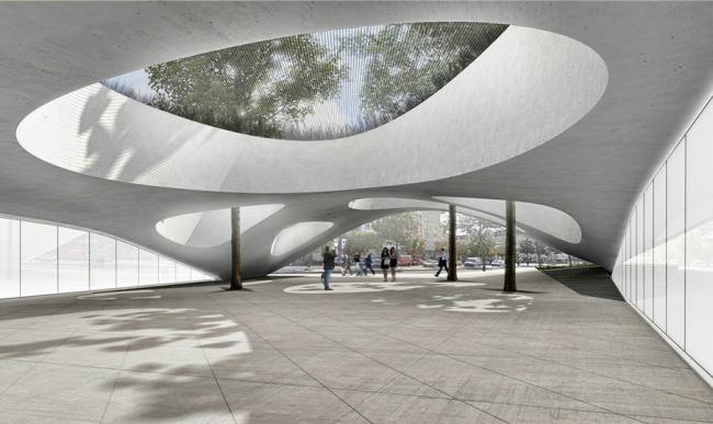 主持設(shè)計的Atelierd’ Architecture King Kong建筑事務(wù)所計劃將這個地鐵站打造成一個室內(nèi)廣場,并為它設(shè)計了帶孔洞的混凝土屋頂,意在使地面與地下、室內(nèi)與室外能夠自然地連接。