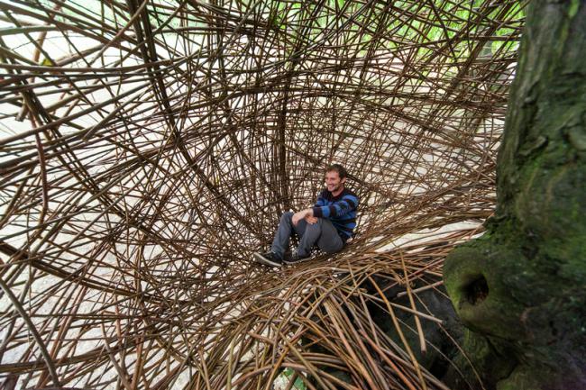 項(xiàng)目開始的時(shí)候,這一個(gè)球體直徑三米,演變成一個(gè)有機(jī)體,以適應(yīng)特定的樹形結(jié)構(gòu)。該設(shè)計(jì)沒有關(guān)節(jié)、繩索、磁帶或指甲,總共有80公斤的重量。