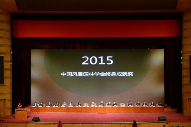 開幕式上還頒發(fā)了中國風(fēng)景園林學(xué)會(huì)終身成就獎(jiǎng)和全國優(yōu)秀科技工作者獎(jiǎng)。隨著抒情的音樂響起,在工作人員聲情并茂的頒獎(jiǎng)詞誦讀中,中國風(fēng)景園林學(xué)會(huì)終身成就獎(jiǎng)?lì)C發(fā)儀式開始,2015年此項(xiàng)殊榮的獲得者是原天津市園林局副總工程師陳威,華南理工大學(xué)建筑學(xué)院教授劉管平,中國風(fēng)景園林學(xué)會(huì)女風(fēng)景園林師分會(huì)副會(huì)長檀馨,上海市園林設(shè)計(jì)院有限公司名譽(yù)院長周在春,原中國風(fēng)景園林學(xué)會(huì)副理事長任春秀,原中國公園協(xié)會(huì)副會(huì)長、廣州園林局老局長吳勁章六位老人。隨后,北京市花木有限公司總經(jīng)理兼總工程師于學(xué)斌、浙江農(nóng)林大學(xué)風(fēng)景園林與建筑學(xué)院院長包志毅、上海市園林設(shè)計(jì)院有限公司董事長朱祥明等三位因其在風(fēng)景園林行業(yè)的突出貢獻(xiàn),獲得中國風(fēng)景園林學(xué)會(huì)全國優(yōu)秀科技工作者獎(jiǎng)。
