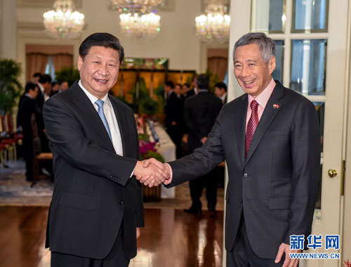 當地時間11月7日,國家主席習近平在新加坡同新加坡總理李顯龍舉行會談。