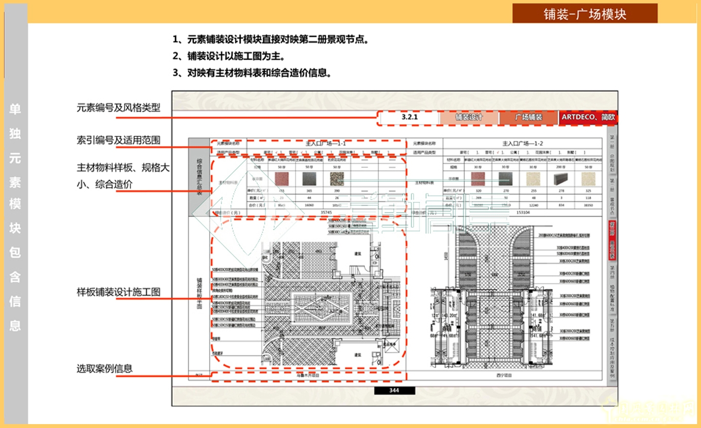 內容分為構筑物、鋪裝設計、設施小品3大類元素模塊;