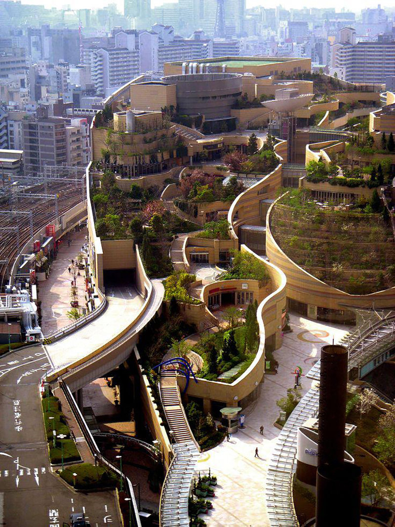 美國捷得國際建筑師事務所總體規劃和建筑設計的難波公園層層仄仄,是一座看起來如同空中園一樣的完美建筑。原址是一座棒球館,位于大阪傳統熱鬧商業區的現代建筑,鄰近難波火車站,離機場一站之遙,將城際列車、地鐵等交通樞功能與辦公、酒店、住宅完美結合,是日本開發成功的城市綜合體的代表項目。它是一個購物中心與辦公樓的綜合體。