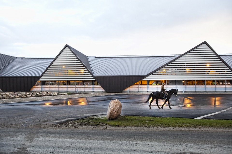 擁有獨(dú)特交叉山墻屋頂?shù)慕ㄖ蛩膫€(gè)方向伸出,形成單個(gè)面積較小的農(nóng)場單元,并融入周圍的風(fēng)景。