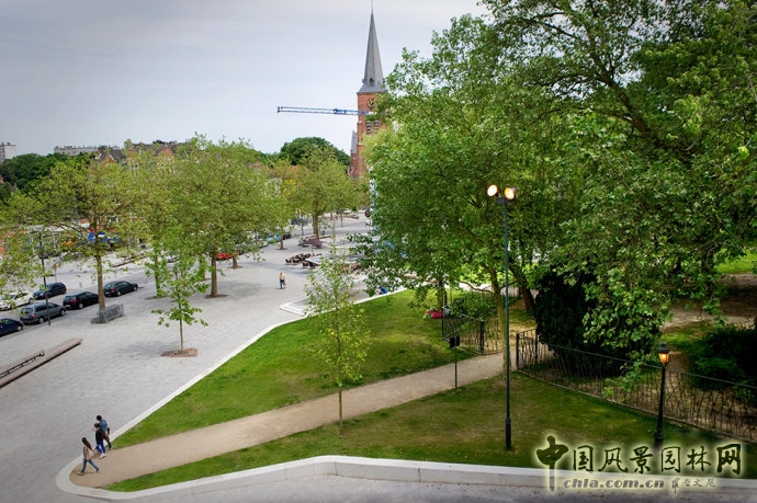 kardinaal名士廣場由OMGEVING城市景觀規劃事務所設計,位于比利時布魯塞爾最環保的19個社區之一的中心。曾經的城市大門聚集著各種活動場所,包括警察局、火車站、電車和公共汽車站、教堂、圖書館和學校。該廣場是公民活動空間的中心,這給設計團隊帶來了重大的挑戰。因為設計團隊必須要合理安排所有的活動空間,同時還要在同一時間內把控機動車和行人的交通流量,以確保廣場更容易被市民訪問。