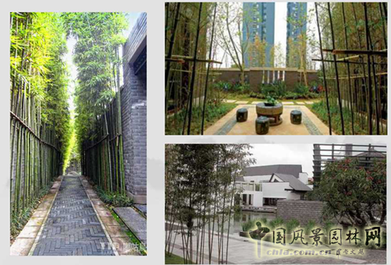 竹文化在現代生活中無處不在,城市景觀中,運用竹類植物最多的是新中式園林景觀,竹類植物多運用較小的觀賞竹,注重與墻體、小品、石頭的搭配,體現簡潔、大方的造園思想。