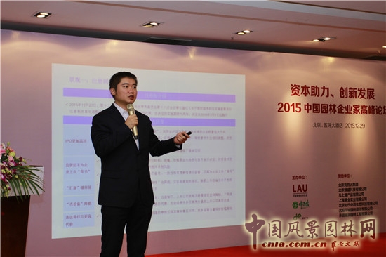 深圳文科園林股份有限公司高級(jí)副總裁孫潛先生帶來(lái)了“園林與資本”的演講。深圳文科園林作為在主板上市的企業(yè),發(fā)展非常迅猛,孫潛先生也是全程參與了企業(yè)上市的過(guò)程,作為地道的園林人,他更多的從行業(yè)角度發(fā)表了對(duì)園林資本的看法。“上市對(duì)企業(yè)的意義是什么?融資的資金到底如何來(lái)用?”這是許多園林行業(yè)面對(duì)上市都會(huì)遇到的問(wèn)題,孫總也強(qiáng)調(diào),會(huì)賺錢(qián)的企業(yè)并不是最值錢(qián)的企業(yè),上市是可以解決一些問(wèn)題,但是企業(yè)更要注重的是上市之后的發(fā)展,只有這樣才能真正發(fā)揮資本的作用。
