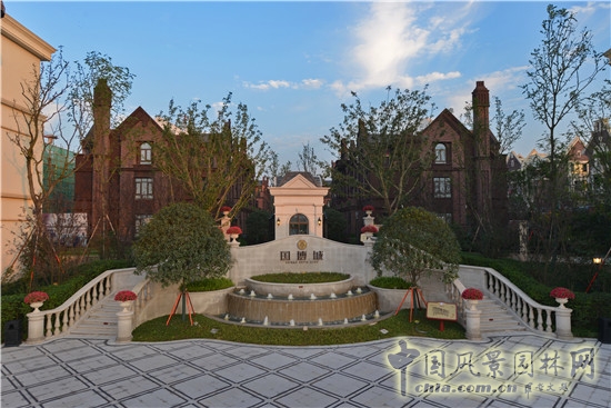 項目位于重慶市中心以北,緊鄰重慶悅來國際會議中心,群山環繞,周邊自然資源豐富,總占地為58萬方,地勢復雜、背山面水,氣勢恢宏。現設計施工的區域為展示區,共9萬平方;會所及商業區建筑為法式風格,別墅為英式風格。