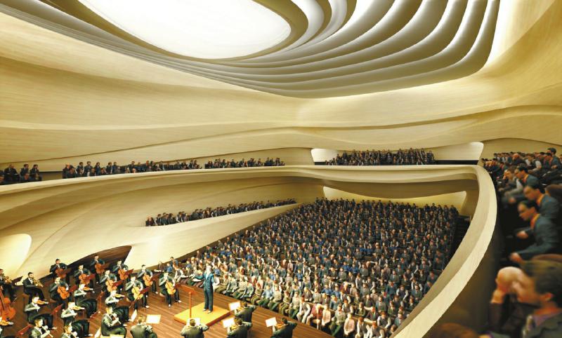 據(jù)相關(guān)人士介紹,從最早的方案開始,扎哈·哈迪德前前后后進(jìn)行了20多次修改才形成了現(xiàn)在這個(gè)方案。修改過程中,除了外觀的改善外,更多的還在于功能的拓展。新世紀(jì)當(dāng)代藝術(shù)中心不僅有歌劇院,還包括了一個(gè)可容納2000人的大劇場、一個(gè)可容納1000人的音樂廳、一個(gè)可容納1000人的小劇場、一個(gè)會議中心和當(dāng)代藝術(shù)館。其中會議中心內(nèi)設(shè)一個(gè)總面積達(dá)8000平方米的多功能會議廳,可被分隔成十幾個(gè)不同規(guī)格的會議室,面積差不多是現(xiàn)在新會展中心最大的水晶廳的兩倍。
