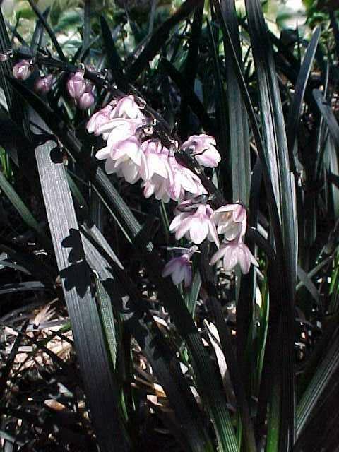 4. Ophiopogon planiscapus 'Nigrescens' 多年生,草本;喜陽;粉色花,花期:7-8月;常用作地被植物
