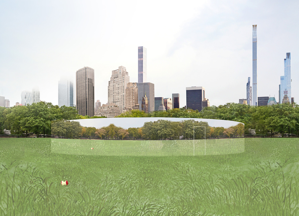 獲得第三名的這個亭子是由來自德國的設計團隊創作的。曲面墻體圍合而成的亭子,在墻壁的一處被一個單獨的門打斷。團隊設想將兩個偏離原心的曲面圓形墻壁放置在外墻體之內,以創造“一系列鑲套的室內空間:具有延展性和收縮性的閾限回廊,集體性活動的開敞區域”。