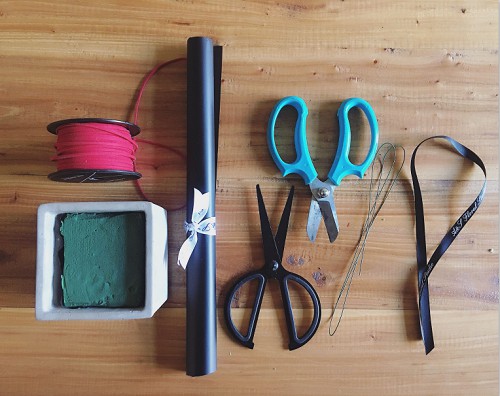 2.準(zhǔn)備所需工具。例如:花泥,花器,剪刀,包裝紙,繩子等