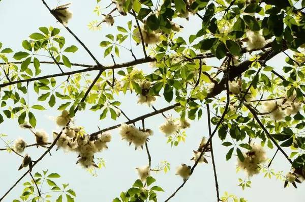 木棉花的「棉絮」是木棉花種子傳播的載體,每團棉絮中間都有一粒黑色的種子,是它們讓運送種子飄散四方。木棉飛絮持續時間約半個月左右。