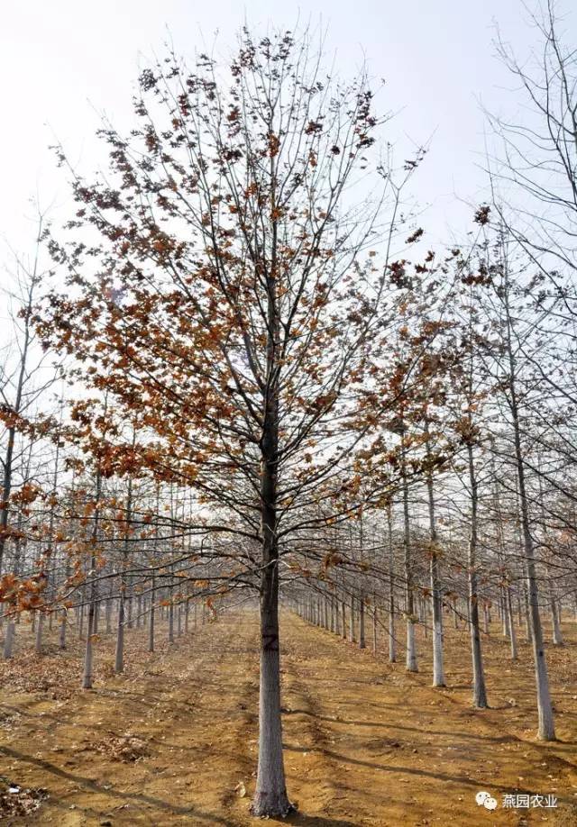 之所以有如此優美的樹冠,是因其側枝與主干的夾角由上到下依次呈銳角、直角和鈍角,樹高可達18米,冠幅可達14米,夏葉碧綠,秋葉鮮紅,冬葉常常枯而不落,特征明顯。喜歡陽光充足的環境和排水良好的土壤。