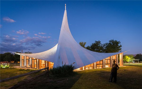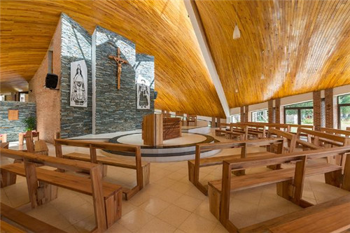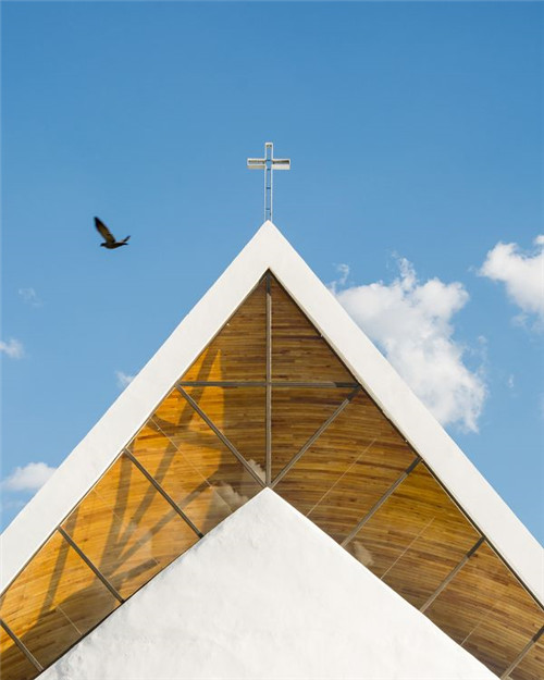 這種簡單材料的主要用途體現了brochero的謙遜特質,建筑師選擇的磚塊,石頭和項目內部空間的木材與這樣的特質相得益彰。天花板的開放使建筑內部被自然光點亮,但仍然看不見其結構。在晚上,十字架,坐落在教堂的尖塔變得明亮,成為了社區中心的燈塔。