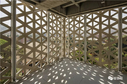 其概念基于"呼吸的建筑",思考了關于"簡單的材料,智能幾何"的問題。高質量預制元素構成的外部表皮允許外部的煙囪直接吸入室外的冷空氣,生成和影響熱質量。熱力學的概念,譬如對流和熱力,由于溫度從冷到熱的改變而產生不斷流動的空氣,在員工工作區中制造舒適的氣流。