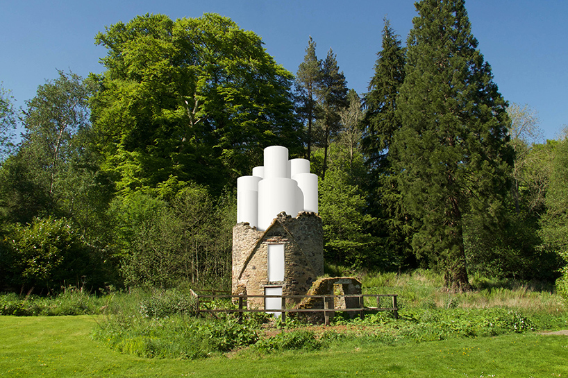 messam把3個充氣雕塑作品放在了景點mellerstain house里的borders sculpture park公園,有的和建筑融為一體,有的裝點著周圍的景觀。這3個充氣雕塑都呈現出純白色,它們取代了原本打算用來裝飾花園的大理石雕像,建立了過去和現在之間的對話。
