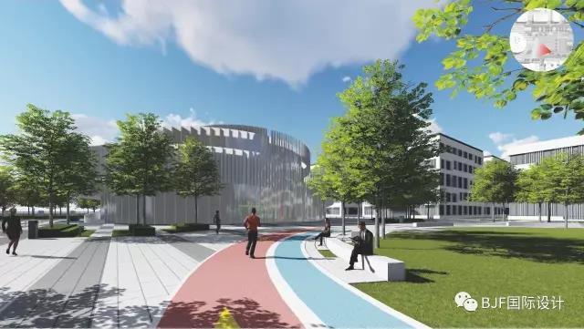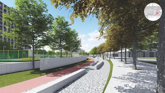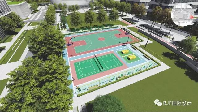 B區運動區主要體現健康、運動主題,設計了環形跑道、籃球場、網球場、乒乓球臺等實用而又普及率高運動設施,為下班后的人們提供一個運動空間。