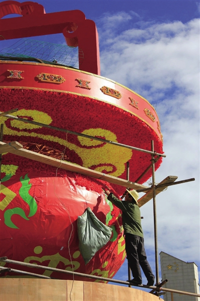 記者昨日在布達拉宮廣場看到,園林工人們正在布置一個非常精美的花雕設(shè)計——“盛世花籃”。“花籃的地臺由藏式吉祥八寶、藏式祥紋組成。吉祥八寶圖下面由歷屆雪頓節(jié)代表性照片和拉薩城市建設(shè)取得的成果組成照片群像,地臺下方是藏式5色的階梯,并在上面擺放仿真綠植和黑頸鶴、蝴蝶、白唇鹿等。”拉薩市園林局相關(guān)負責(zé)人介紹,“旨在通過這些元素展現(xiàn)生態(tài)、環(huán)保的理念。”