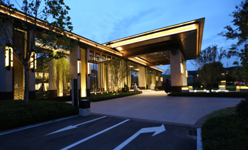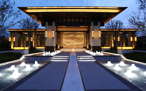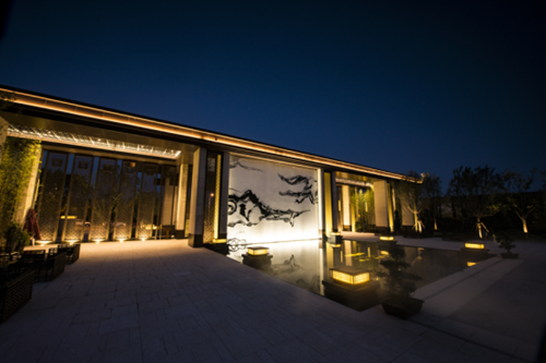 夜幕下的酒店大堂式入口,當代新建,神韻具備,一釘一瓦,賦予新意。素雅中保留著尊貴的氣息。
